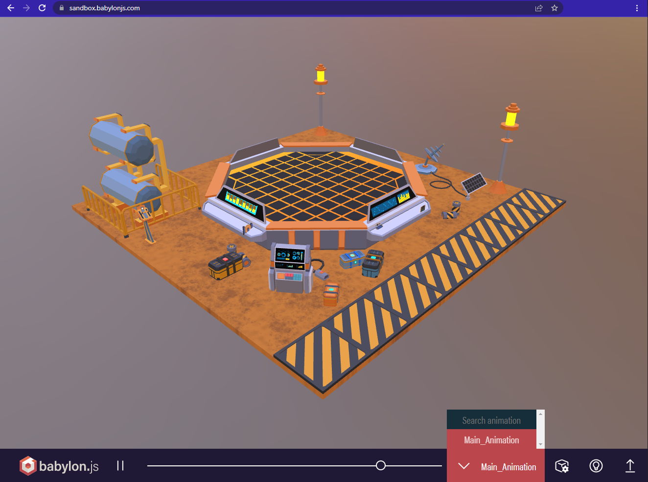 In the sandbox you can also preview the animations that are embedded in the model, select which to display by picking it out of a dropdown menu.