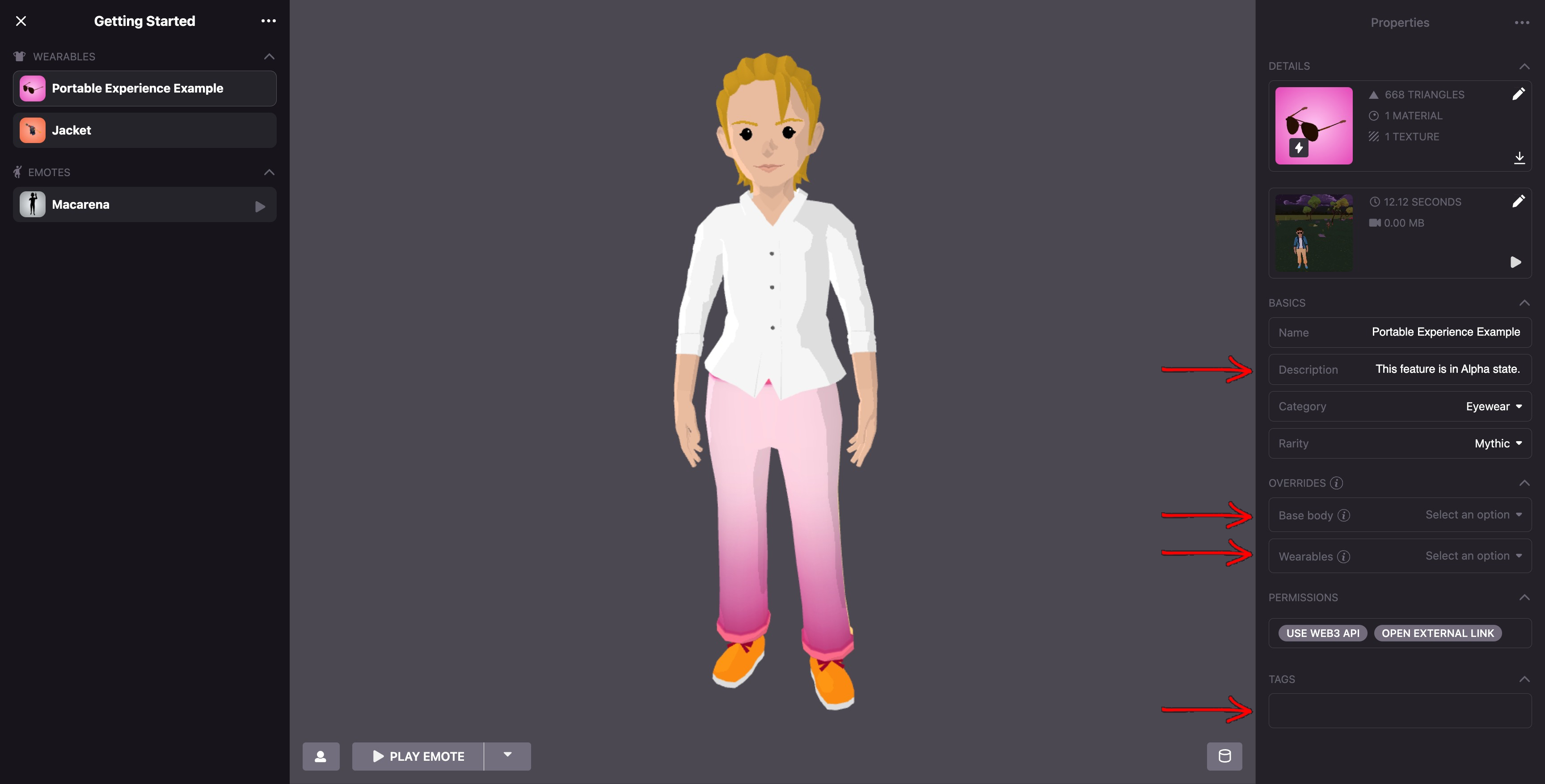 Once you click on Preview in Editor, you will have the editor open. You can edit your Smart Wearable info, including the description, tags and overrides.