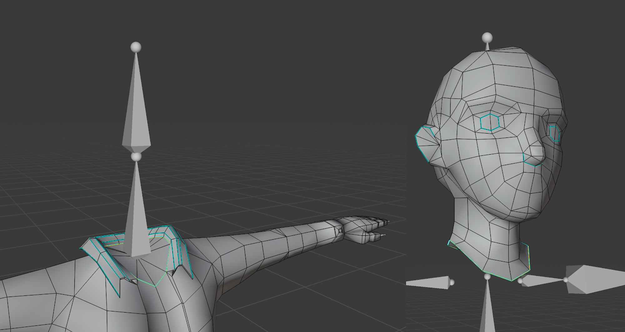 Neck Bone: for the main head and upper body’s intersecting vertices.