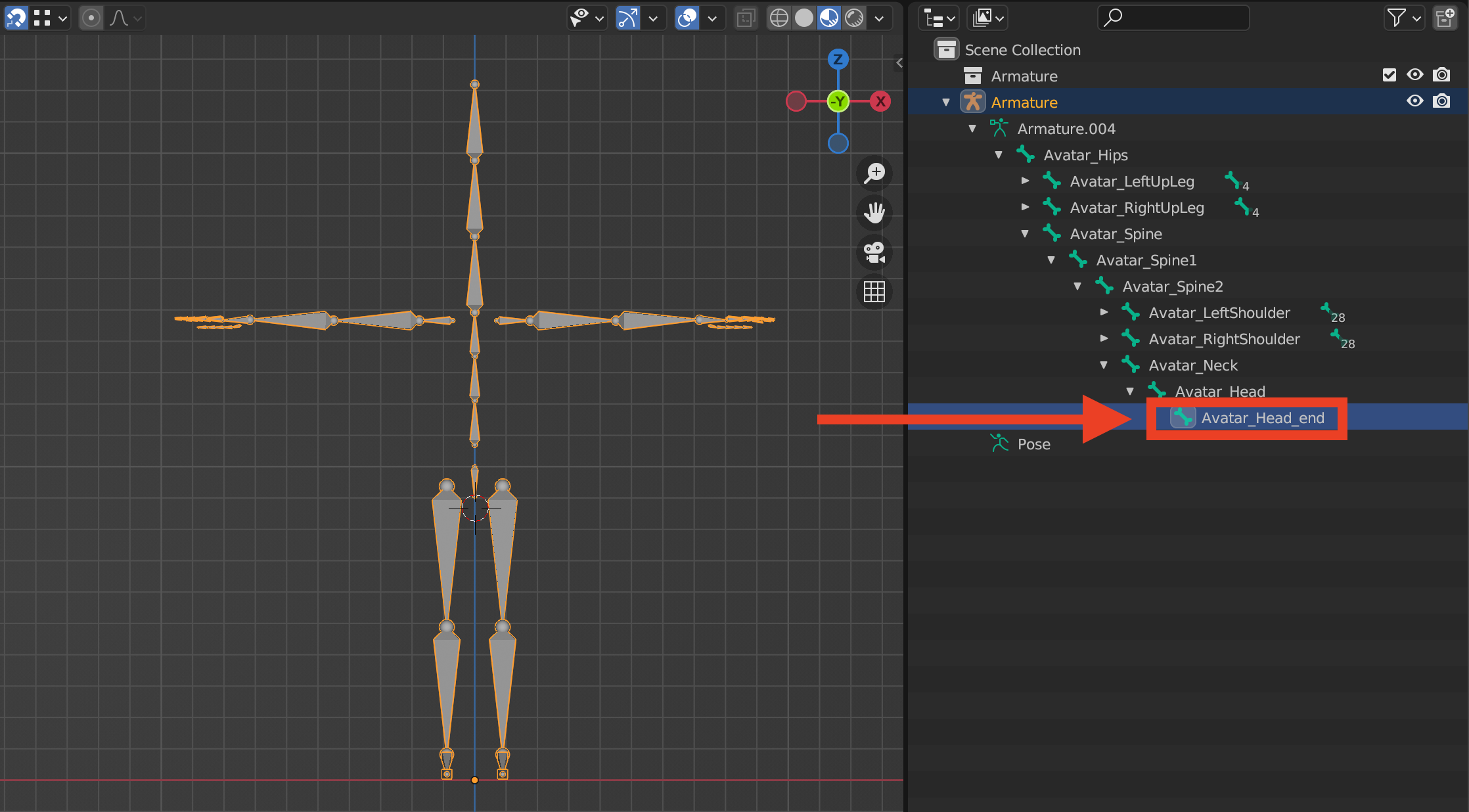 • Keep in mind to export the armature exactly as the one provided in the documentation. If it has any other bones like "_end_bones" or similar is not going to work on the client.