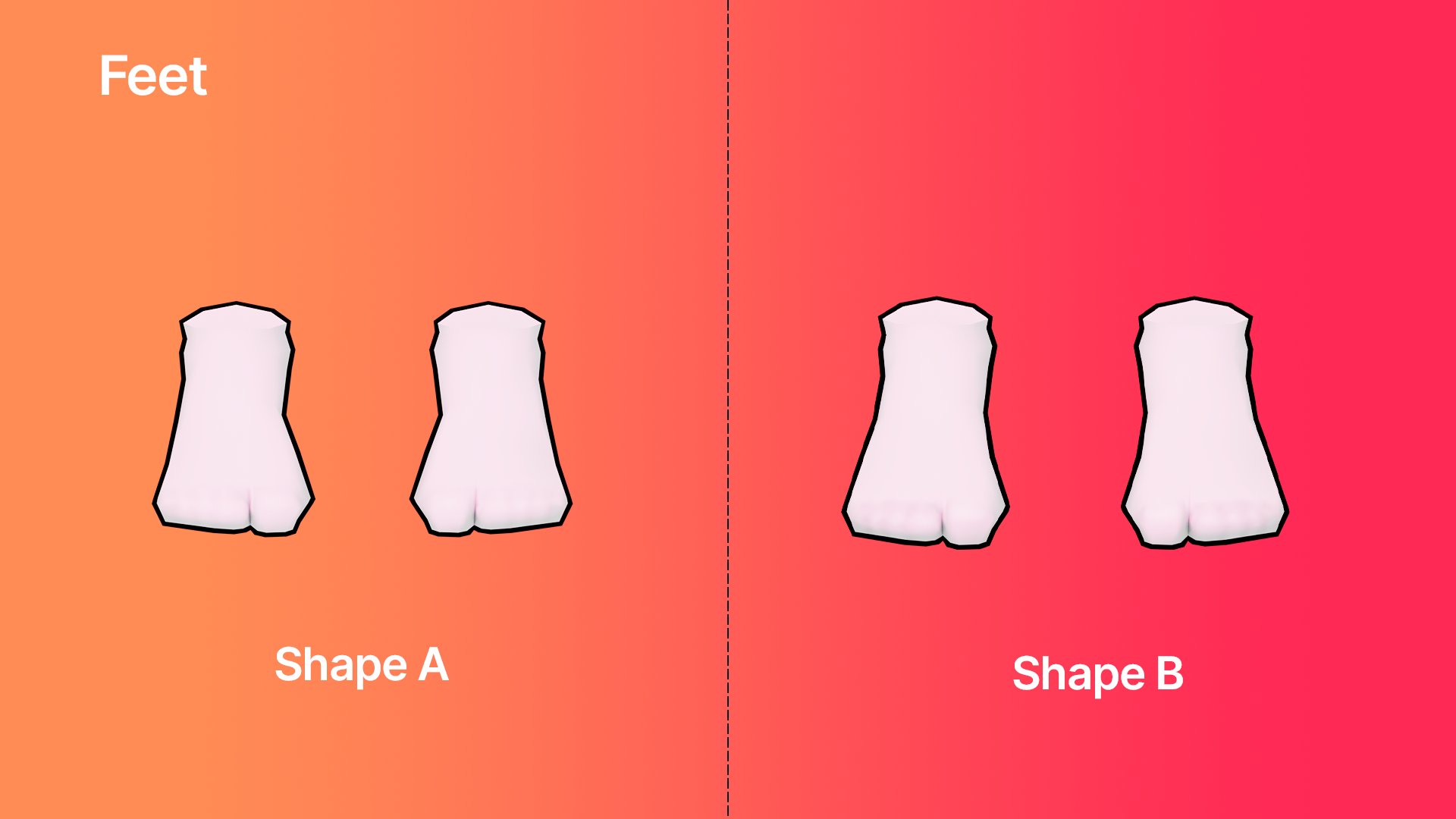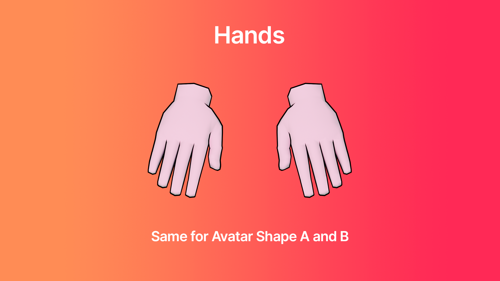 The hands are the same for Shape A and B, and start on the wrists of an avatar.
