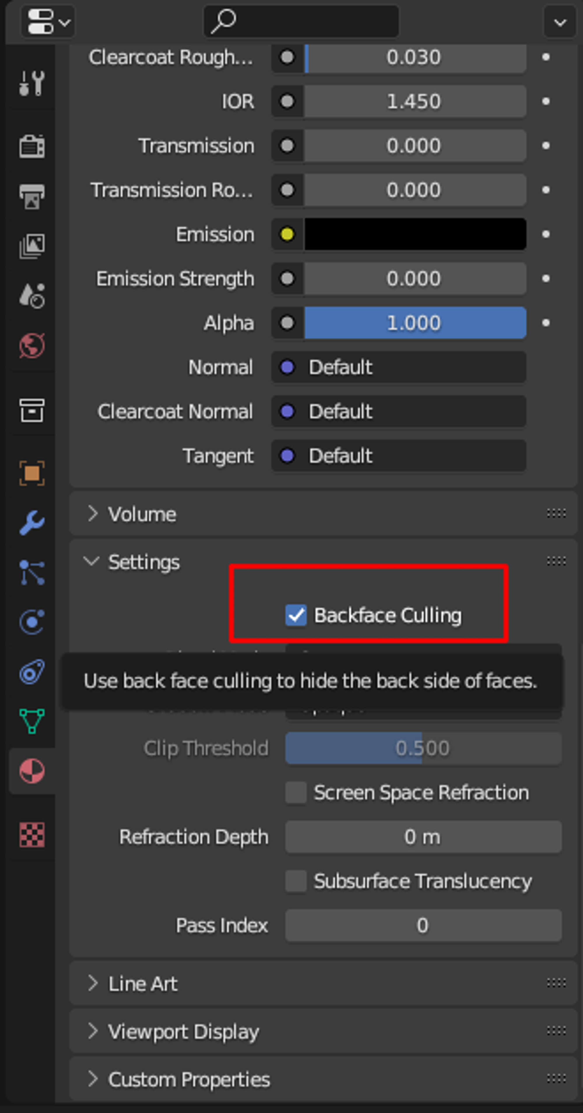 The first one is to toggle the “Backface culling” on the Material properties settings, this is a good practice for spot inverted normals, like in this image: